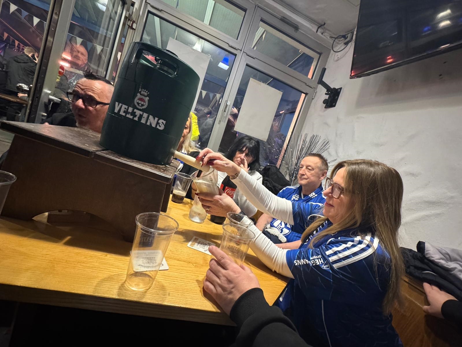 Der erste Stammtisch in diesem Jahr war ein voller Erfolg. Alle anwesenden hatten eine Menge Spaß, gute und lustige Gespräche wurden geführt. Bei Fassbier und Bratwurst war man sich schnell einig das der Stammtisch ein guter Zulauf werden wird. Dadurch dass unser 1.Vorsitzender jede Menge Schalker kennt, gab es auch immer wieder Besuche an unseren Tisch. Neue Mitglieder für die Ruhrknappen wurden auch direkt rekrutiert. Sogar unsere Mitglieder die von weiter wegkommen, sagten kurz Hallo. 40 Minuten vor dem Spiel ging es dann geschlossen zur Arena. Dadurch das gegen Magdeburg ein Sicherheitskorridor eingerichtet war, dauerte der Fußmarsch zur Arena anstatt drei Minuten 8 Minuten. Man kann es verkraften. Am Eingang zur Arena gab es ein paar Probleme, weil der Scanner für das Handy nicht mehr so wollte, wie es sein sollte. Dadurch gab es ca. zehn Minuten Verzögerung. Pünktlich zum Steigerlied waren aber alle Ruhrknappen dann auf ihren Plätzen.